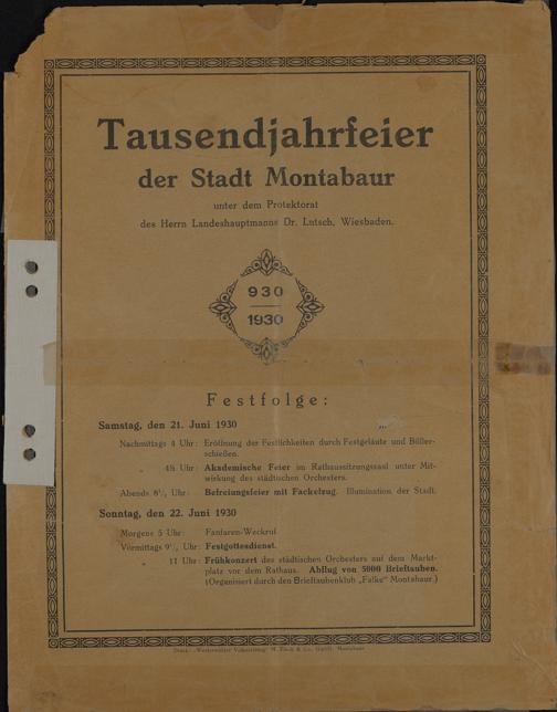 StAMont, Abt. 9.2, L (1000-Jahr-Feier Stadt Montabaur 1930)