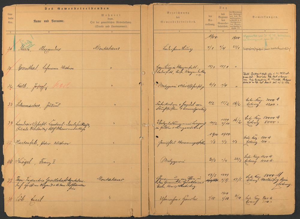 Stern, Alexander Rosenthal, Lehmann Kalb, Joseph Schuhmacher, Julius Landwirtschaftlichliche Zentral- und Darlehenskasse Hartenfels, Peter Knögel, Franz II Tonindustriegesellschaft Montabaur Löb, Emil