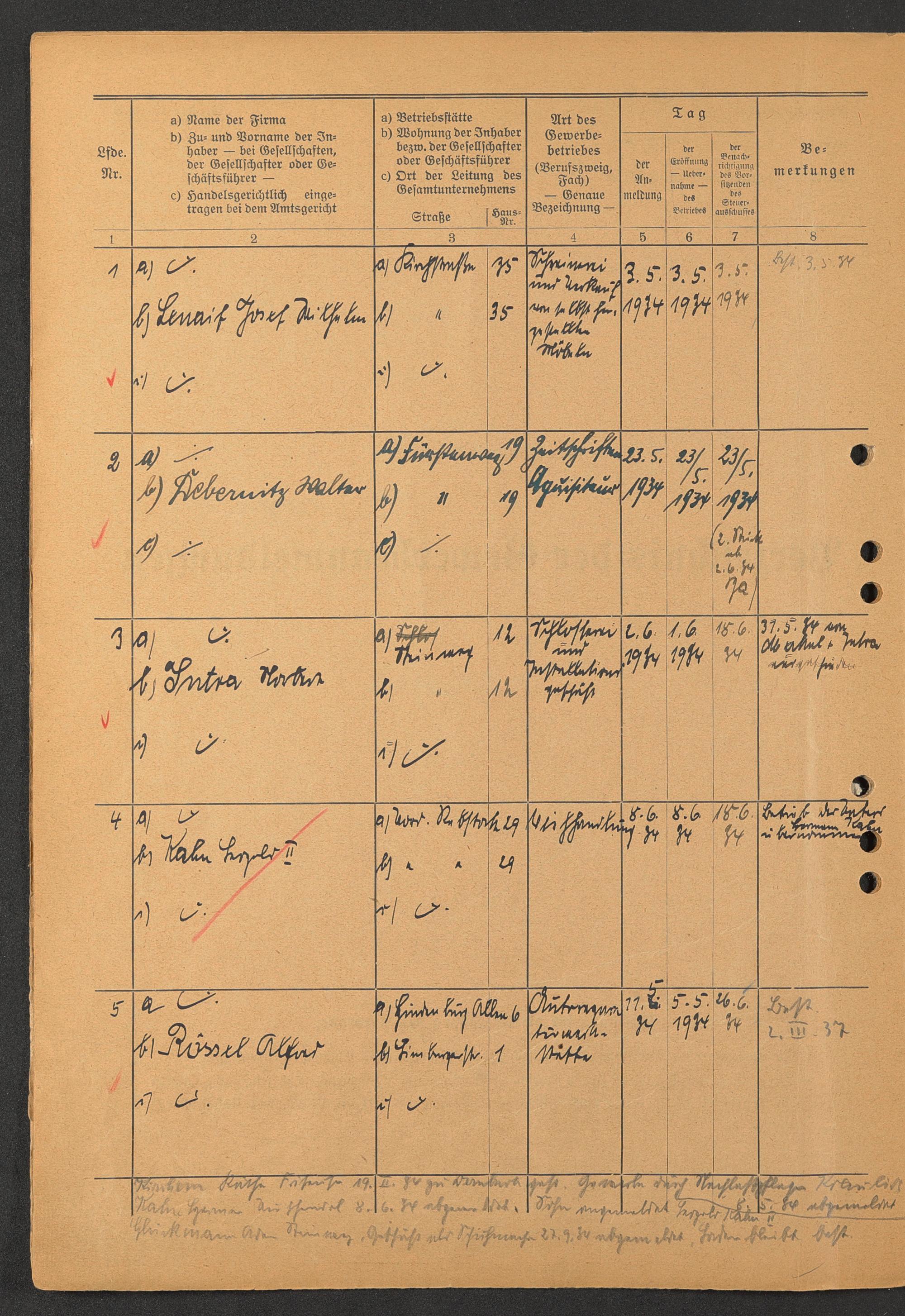 Gewerbeanmeldungen 1932-1936