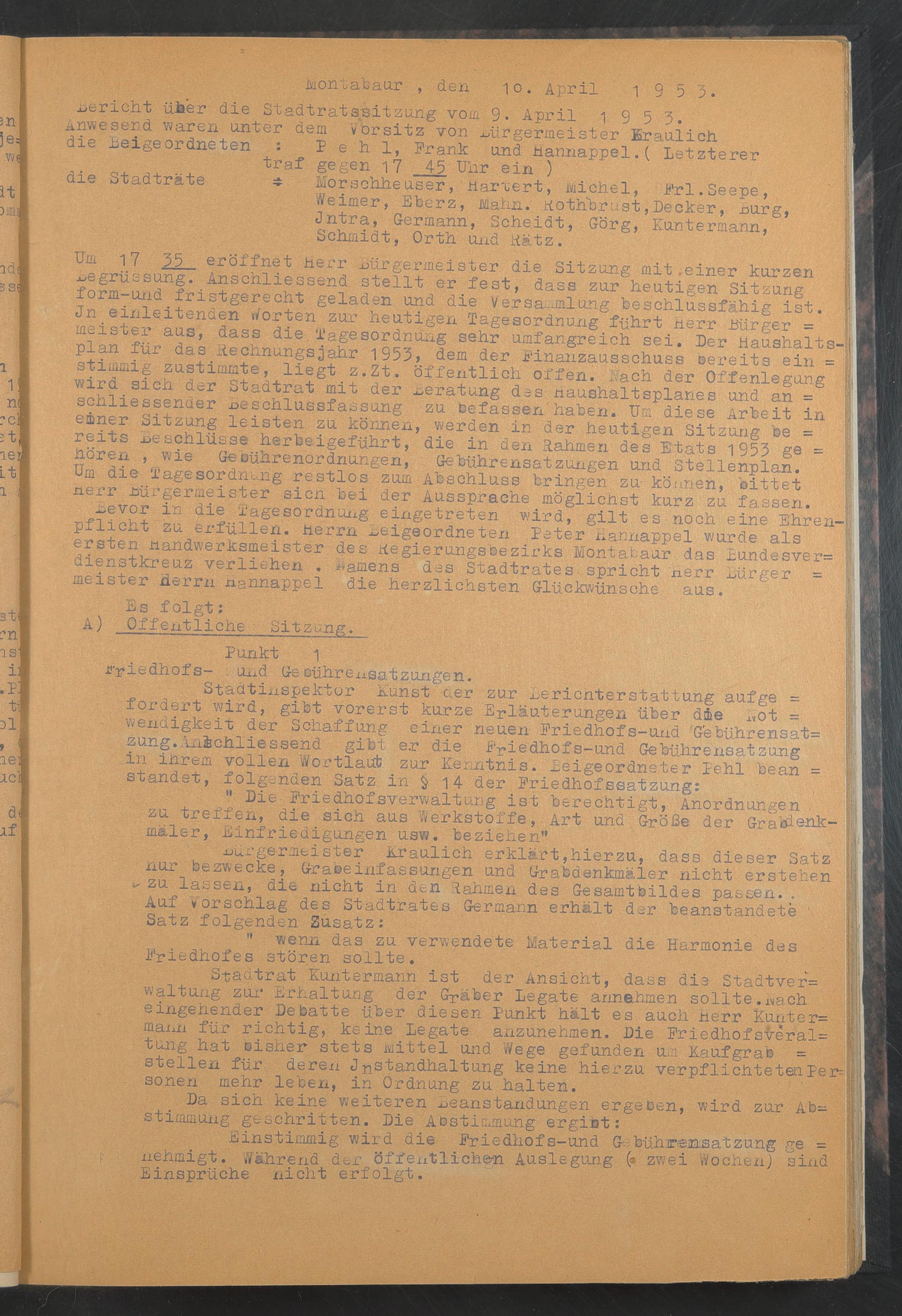 bericht über die Stadtratssitzung vom 9. April 1 9 5 3.
