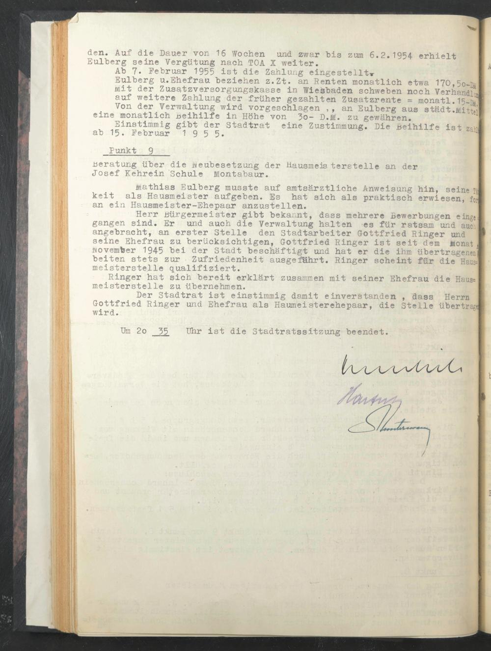 Einstimmig gibt der Stadtrat eine Zustimmung. Die Beihilfe ist za^ ab 15. Februar 1955*