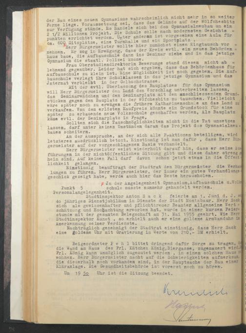 Nachträglich genehmigt der Stadtrat einstimmig, dass Herr Sack eine goldene Uhr mit Gravierung im Werte von 210,- DM erhielt.