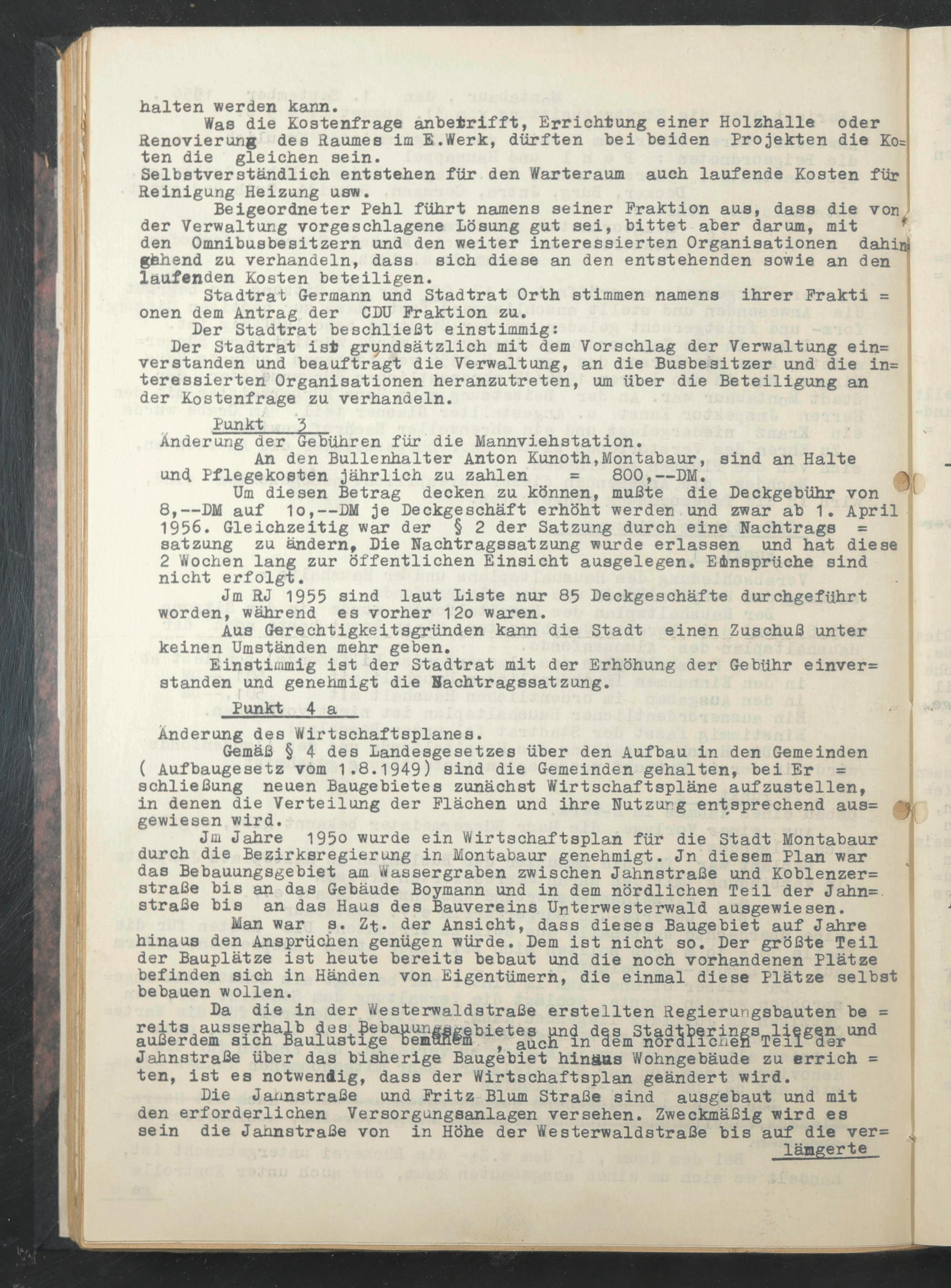 An den Bullenhalter Anton Kunoth,Montabaur, sind an Halte und Pflegekosten jährlich zu zahlen = 800,—DM.