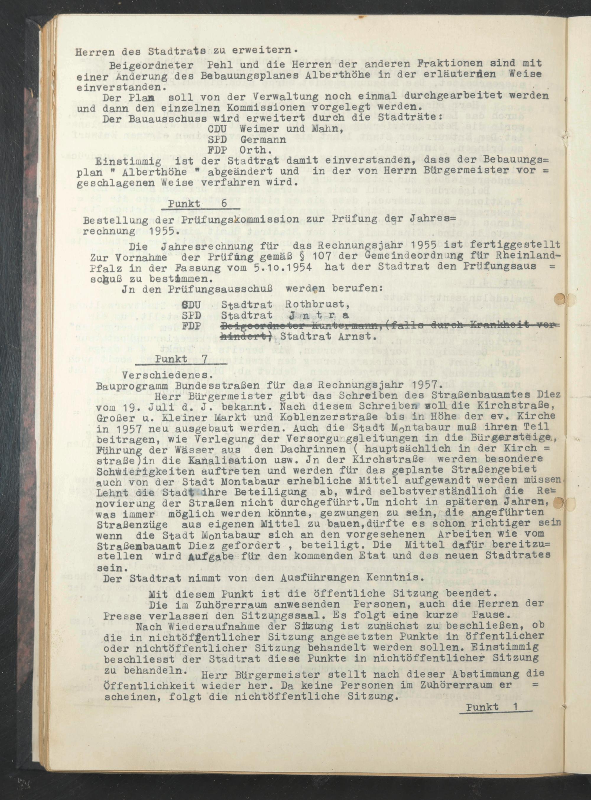 Die Jahresrechnung für das Rechnungsjahr 1955 ist fertiggestellt Zur Vornahme der Prüfung gemäß § 107 der Gemeindeordn mg für Rheinland- Pfalz in der Fassung vom 5-10.1954 hat der Stadtrat den Prüfungsaus = sc&uß zu bestimmen.