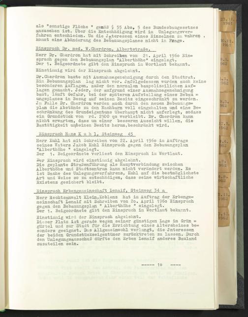 Herr Dr. Cherdron hat mit Schreiben vom 21. April 1960 Ein= spruch gegen den Bebauungsplan "Alberthöhe" eingelegt.