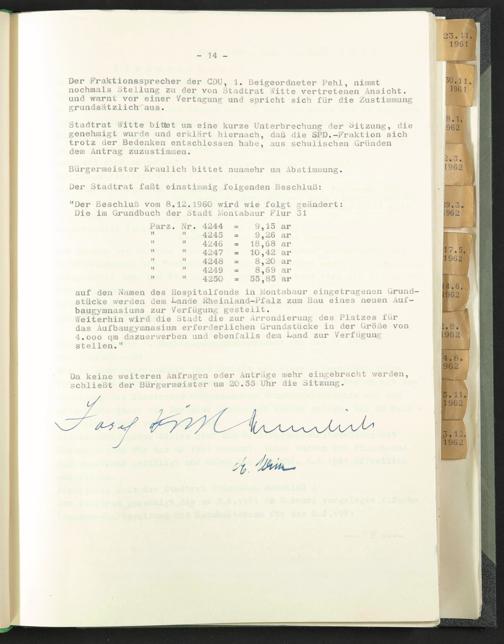 Weiterhin wird die Stadt die zur Arrondierung des Platzes für das Aufbaugymnasium erforderlichen Grundstücke in der Größe von 4.000 qm dazuerwerben und ebenfalls dem Land zur Verfügung stellen."