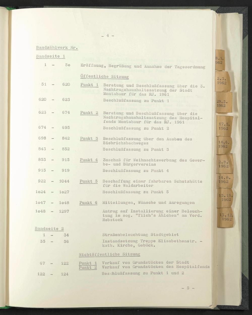 Nachtragshaushaltssatzung des Hospitalfonds Montabaur für das RJ. 1961