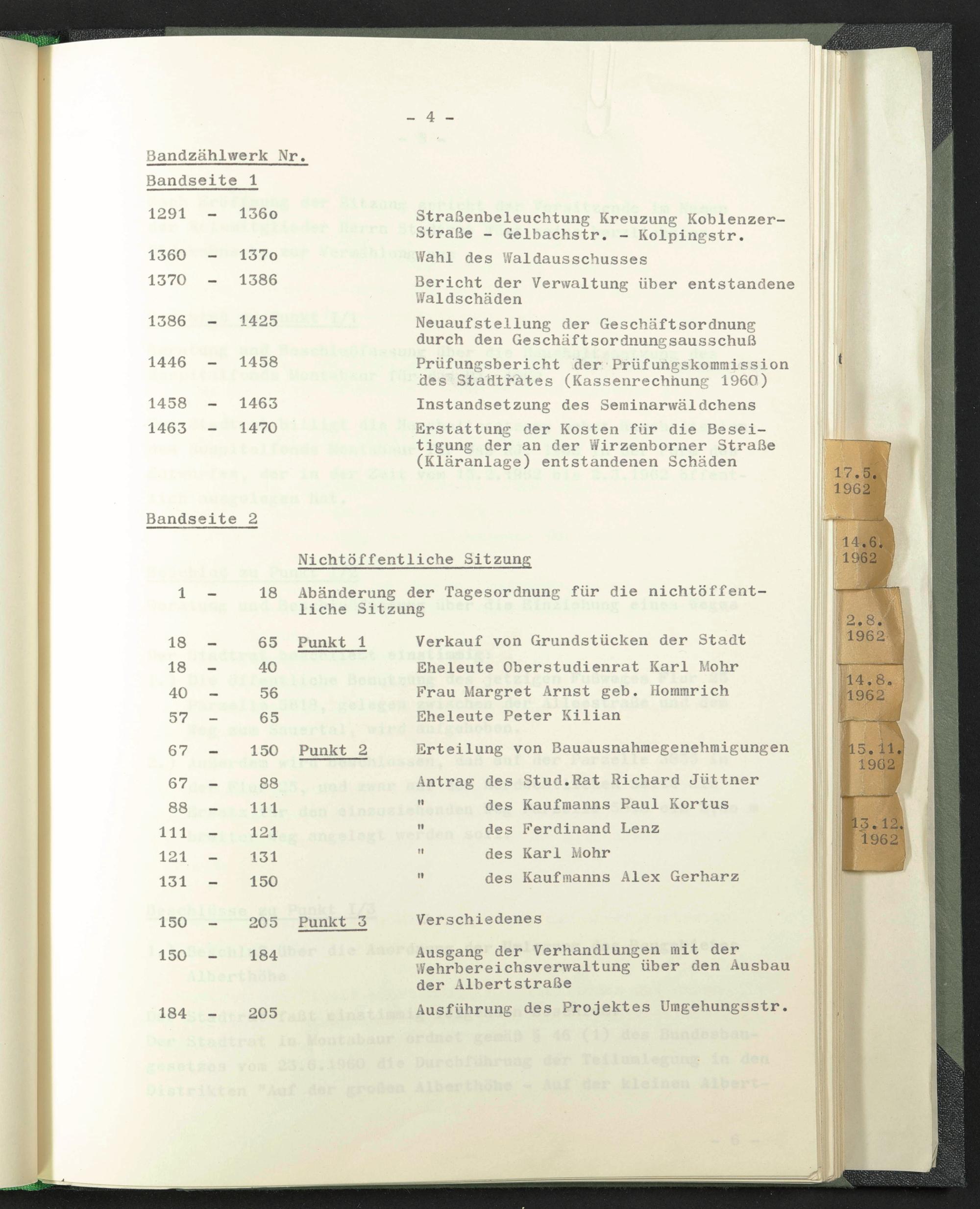 Prüfungsbericht der Prüfungskommission des Stadträtes (Kassenrechnung 1960)