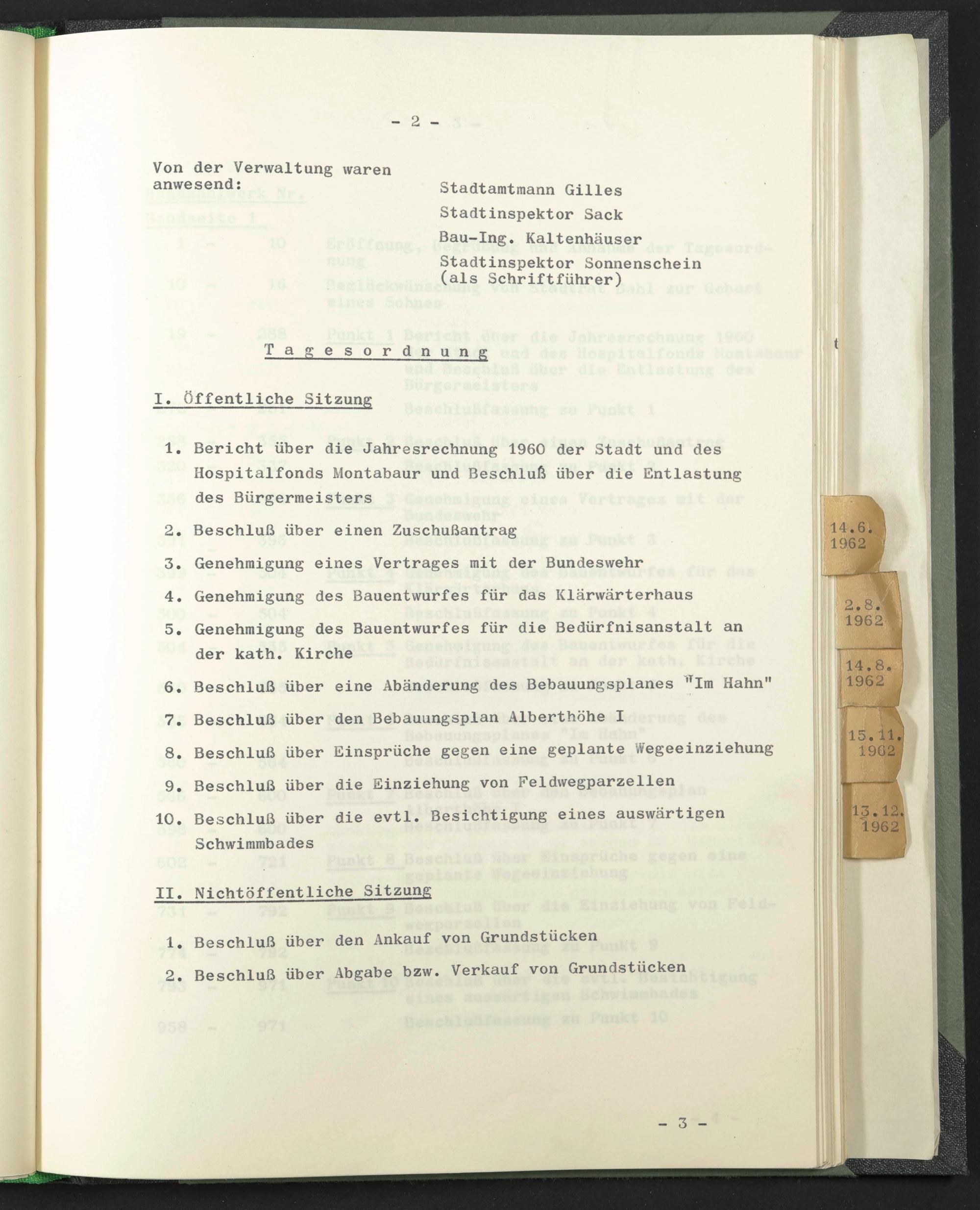 1. Bericht über die Jahresrechnung 1960 der Stadt und des Hospitalfonds Montabaur und Beschluß über die Entlastung des Bürgermeisters