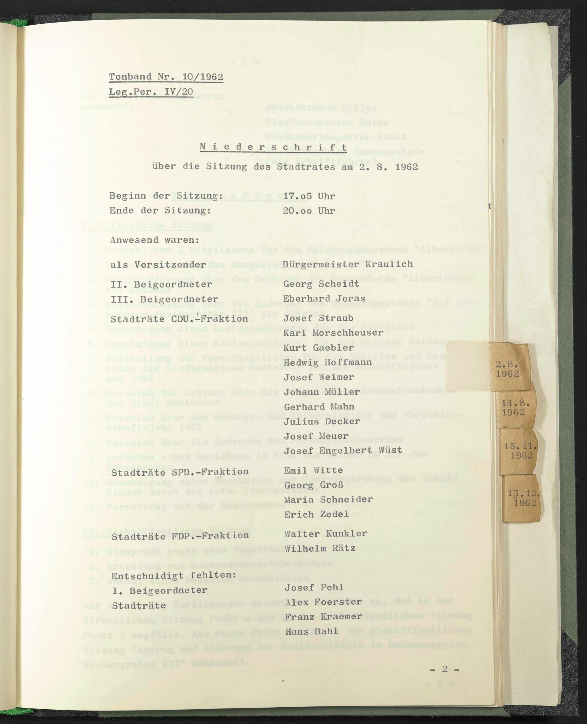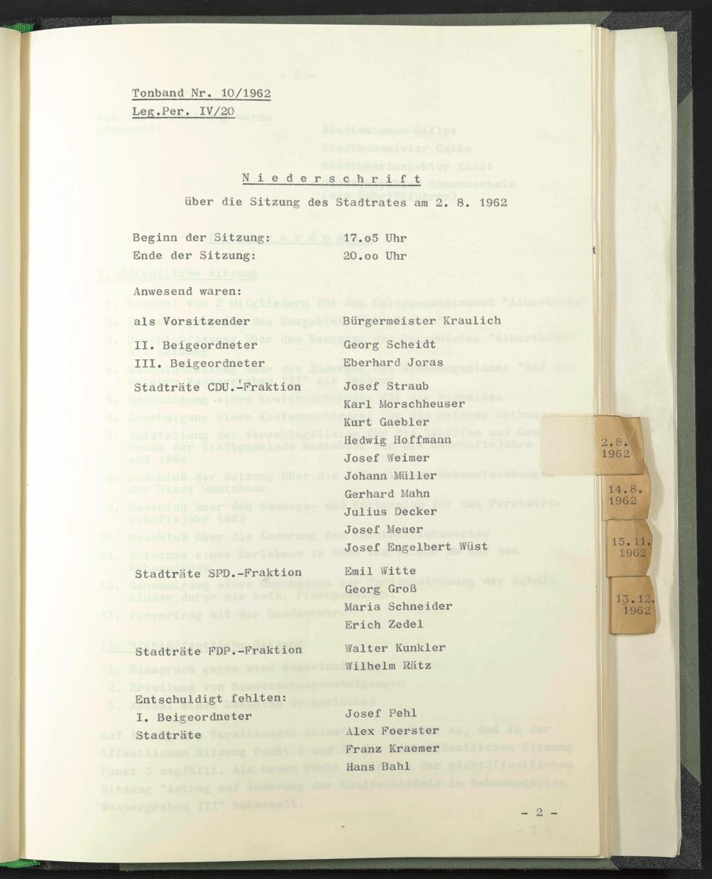 über die Sitzung des Stadtrates am 2. 8. 1962