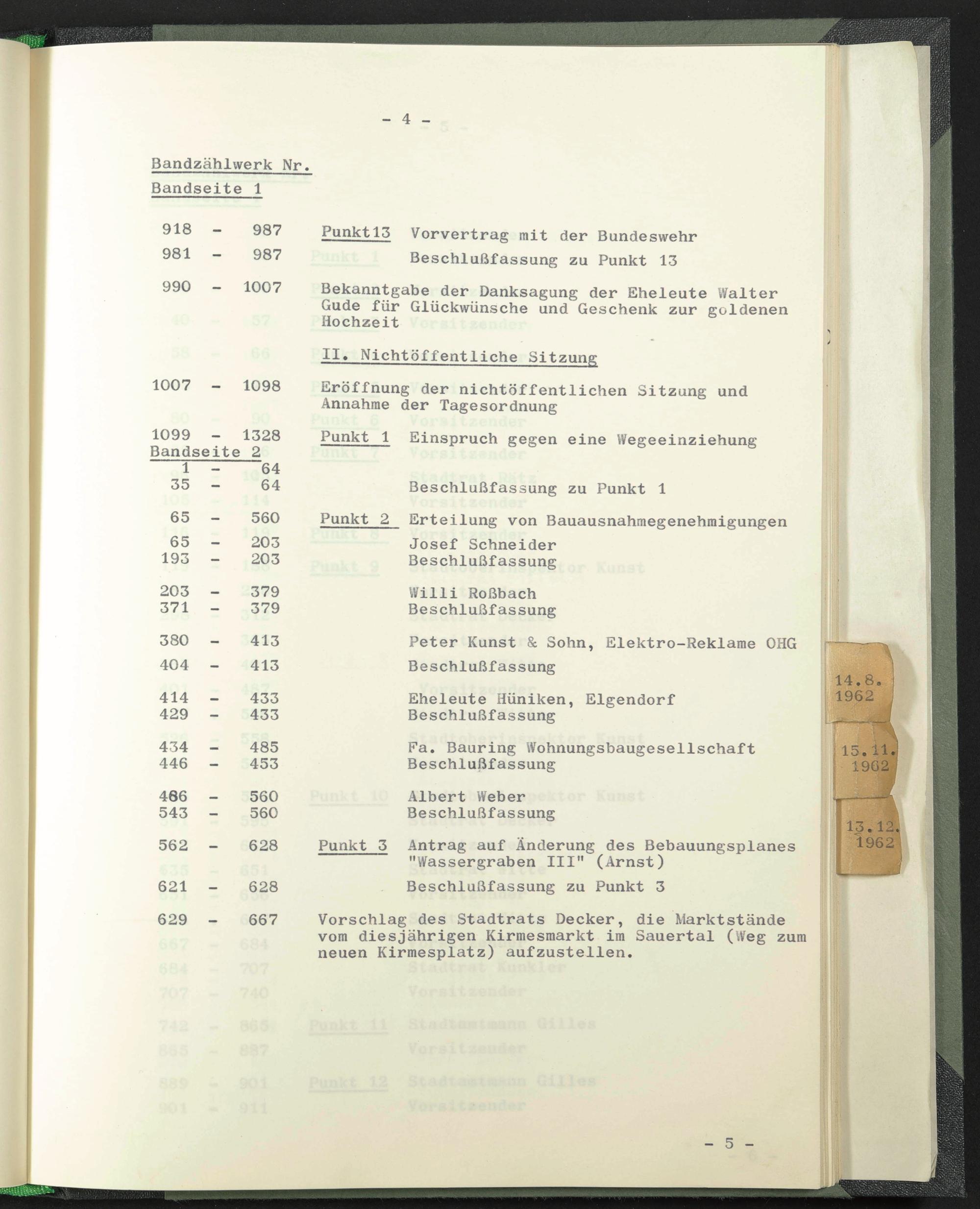 Bekanntgabe der Danksagung der Eheleute Walter Gude für Glückwünsche und Geschenk zur goldenen Hochzeit