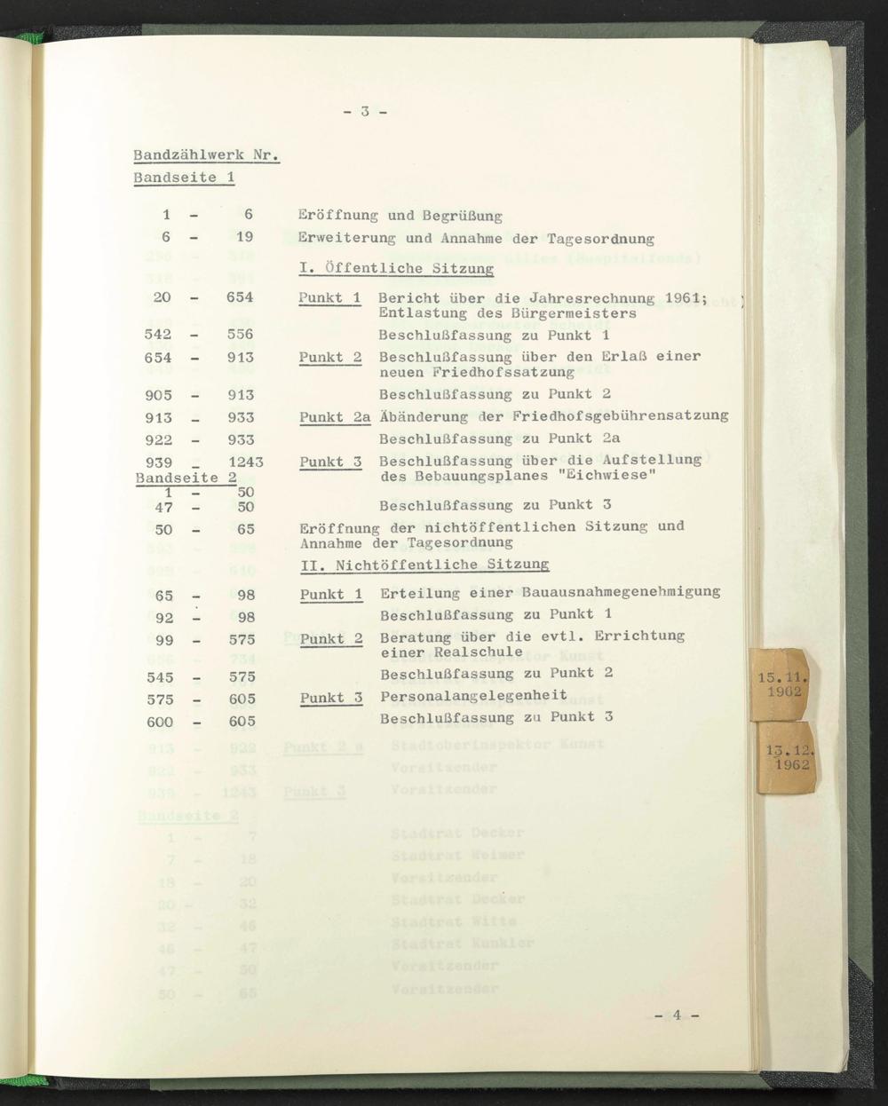 Punkt 1 Bericht über die Jahresrechnuner 1961: Entlastung des Bürgermeisters