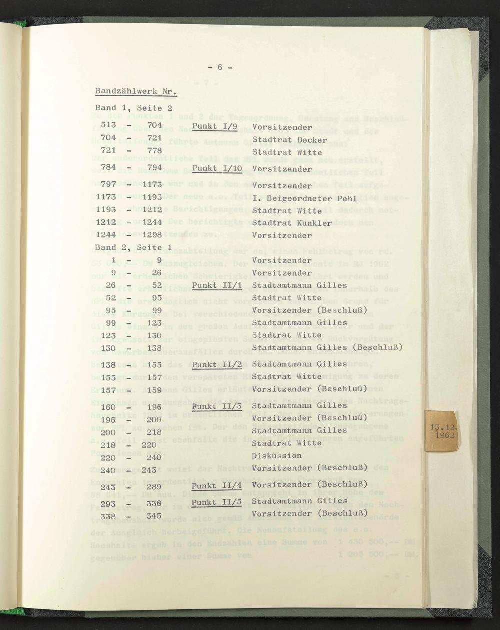 Vorsitzender Vorsitzender Stadtamtmann Gilles Stadtrat Witte Vorsitzender (Beschluß) Stadtamtmann Gilles Stadtrat Witte