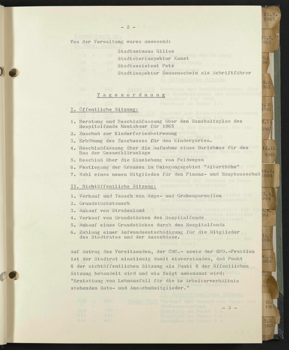 1. Beratung und Beschlußfassung über den Haushaltsplan des Hospitalfonds Montabaur für 1963