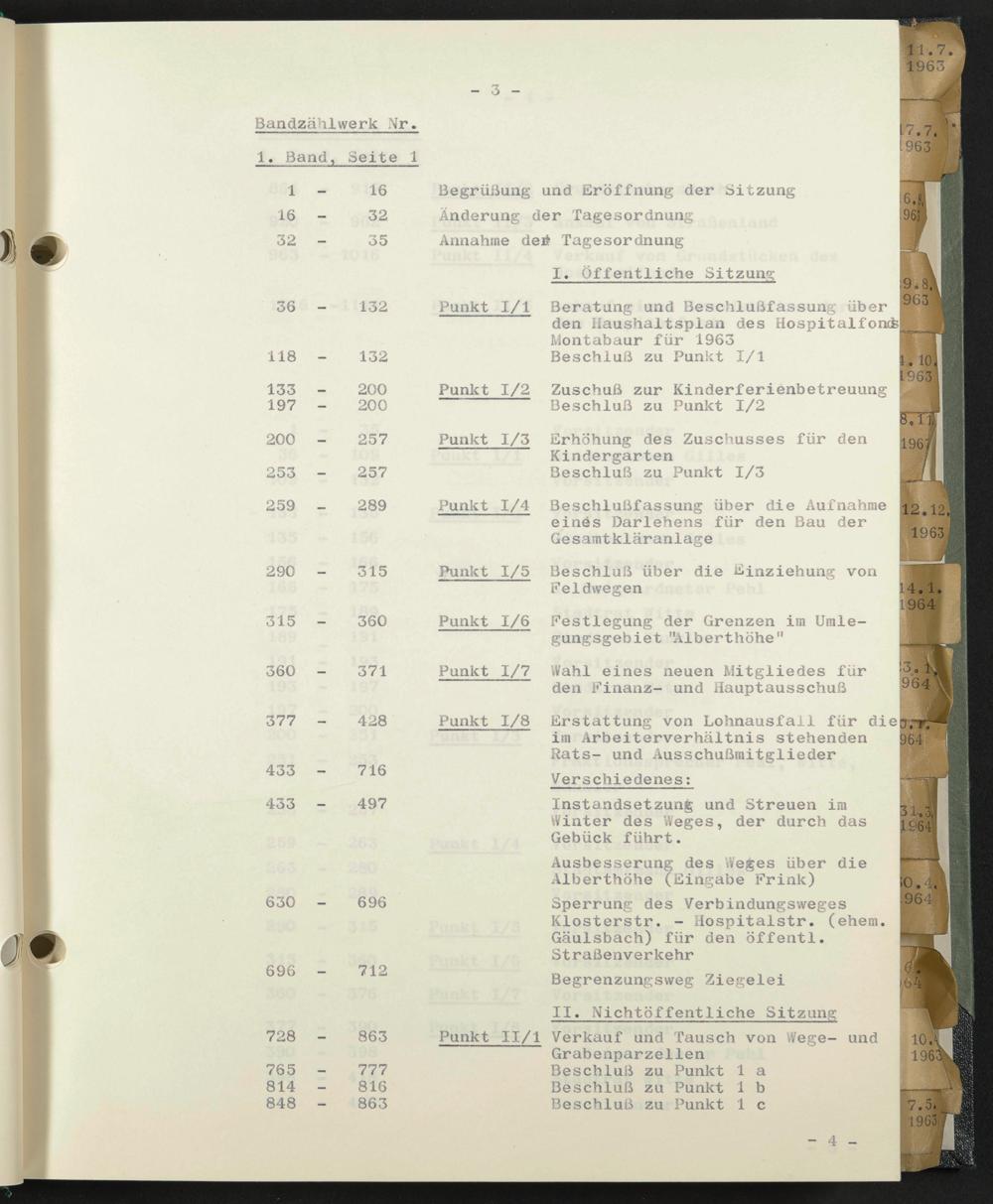 Beratung und Beschlußfassung über den Haushaltsplan des Hospitalfonab Montabaur für 1963 Beschluß zu Punkt 1/1