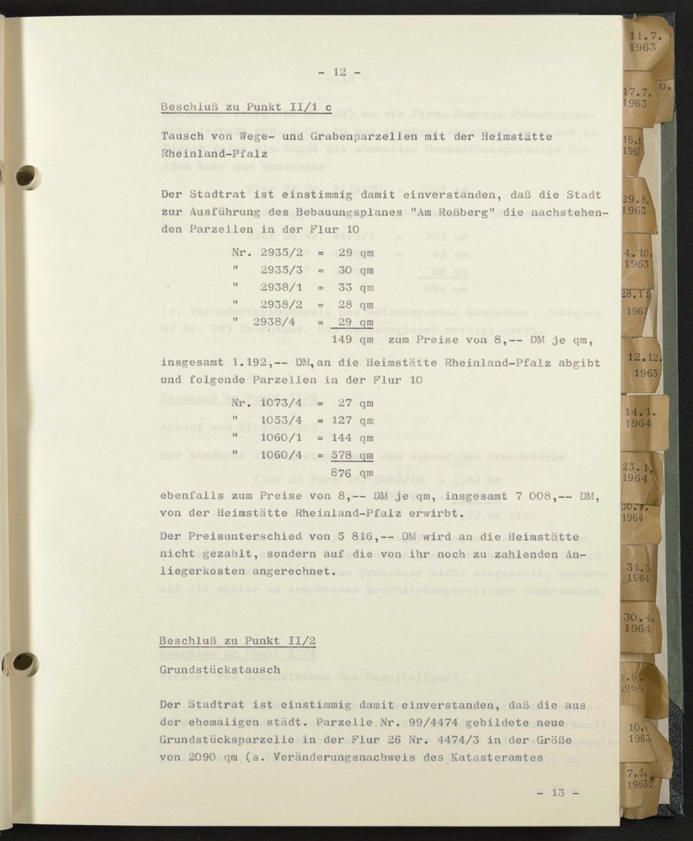 Tausch von Wege- und Grabenparzelien mit der Heimstätte Rheinland-Pfalz