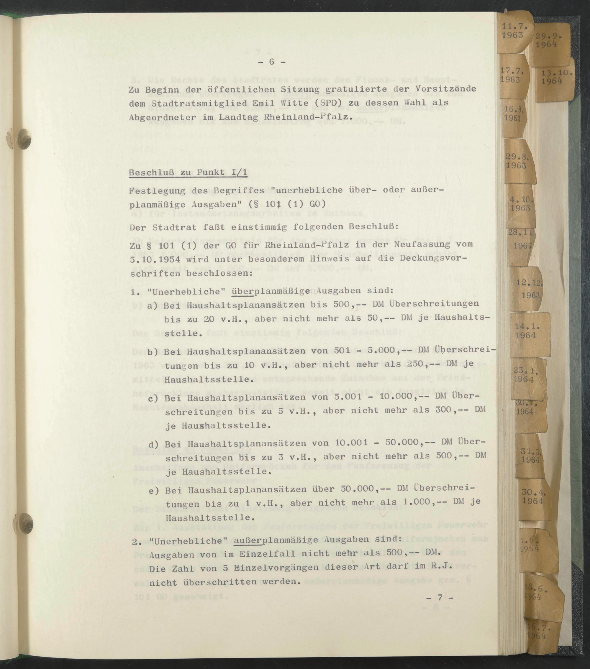 Zu § 101 (1) der GO für Rheinland-Pfalz in der Neufassung vom 5.10.1954 wird unter besonderem Hinweis auf die Deckungsvorschriften beschlossen: