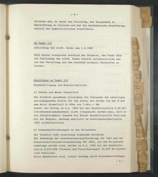 Schließung des städt. Bades zum 1.9.1963