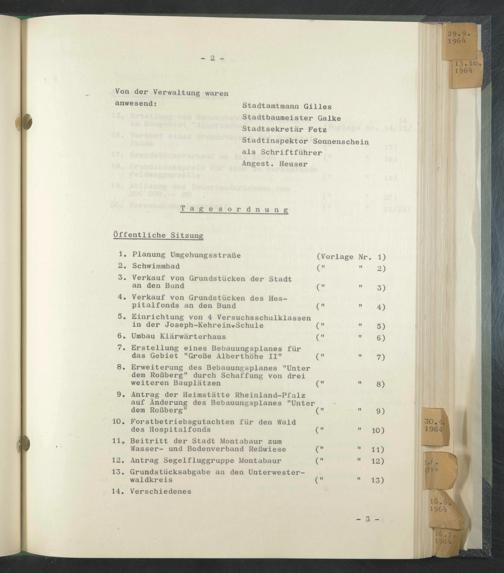Stadtamtmann Gilles Stadtbaumeister Galke Stadtsekretär Fetz Stadtinspektor Sonnenschein als Schriftführer Angest. Heuser