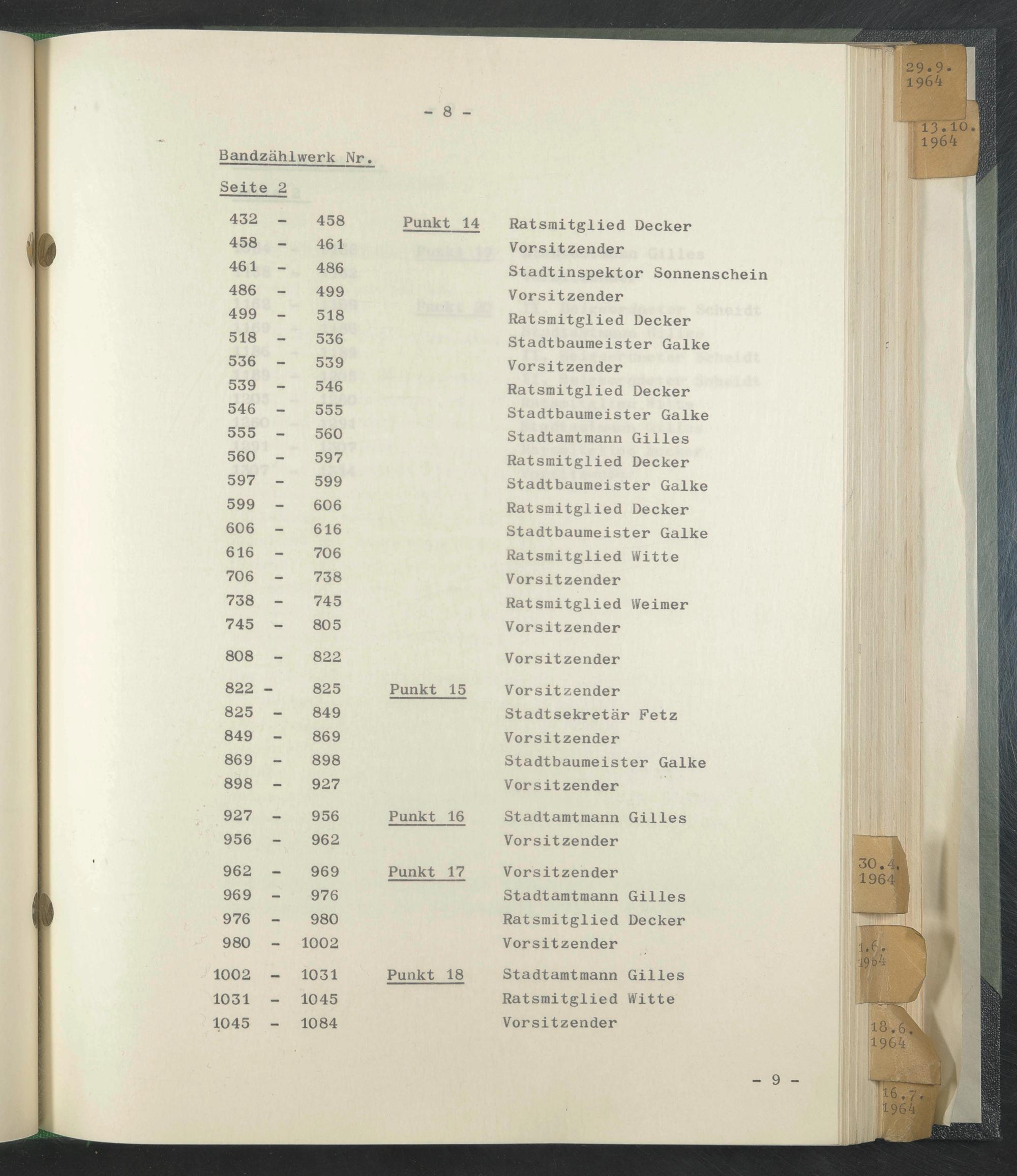 Stadtinspektor Sonnenschein Vorsitzender Ratsmitglied Decker Stadtbaumeister Galke Vorsitzender Ratsmitglied Decker Stadtbaumeister Galke Stadtamtmann Gilles Ratsmitglied Decker Stadtbaumeister Galke Ratsmitglied Decker Stadtbaumeister Galke Ratsmitglied Witte Vorsitzender Ratsmitglied Weimer Vorsitzender