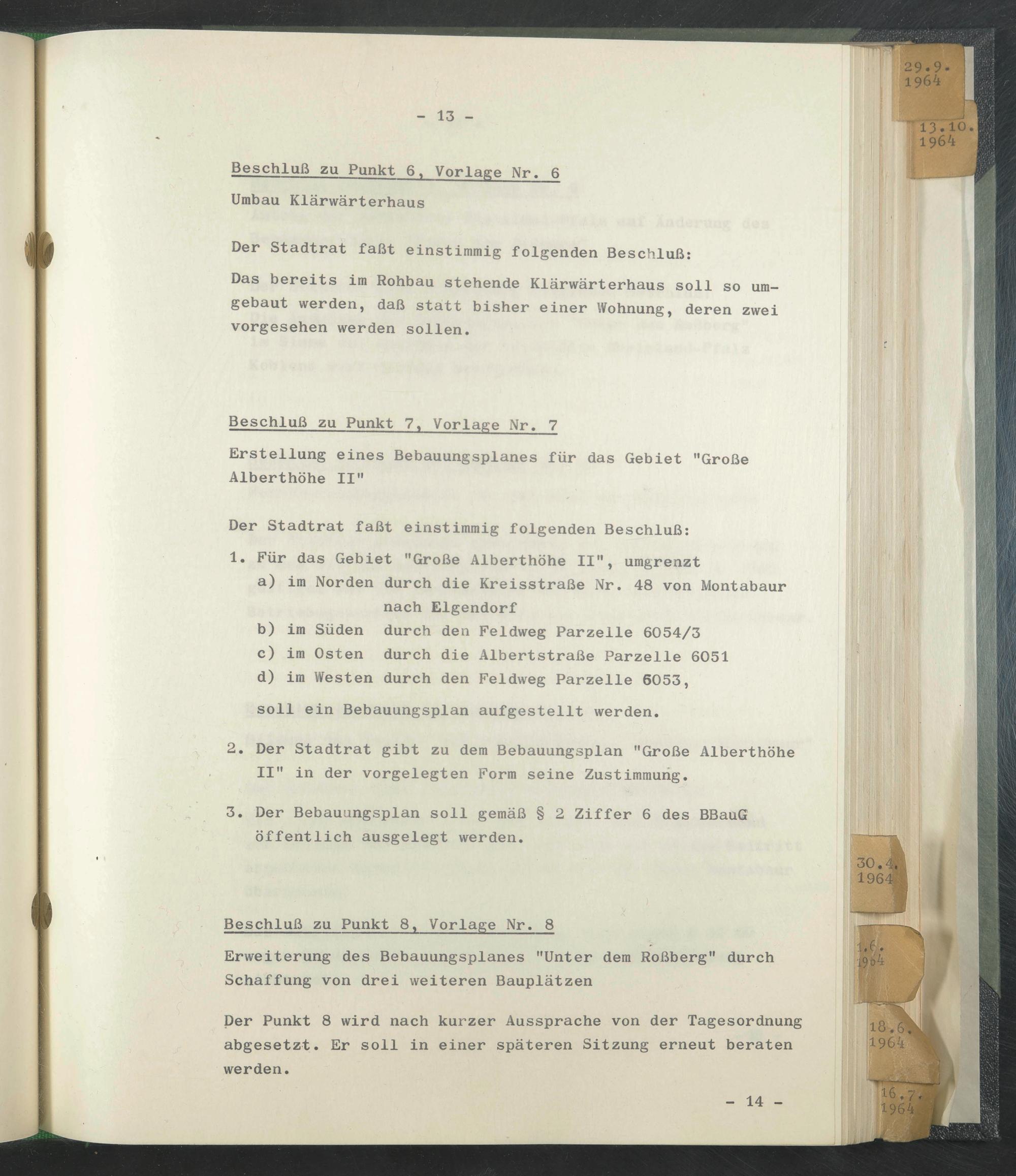 ^ 2. Der Stadtrat gibt zu dem Bebauungsplan "Große Alberthöhe
