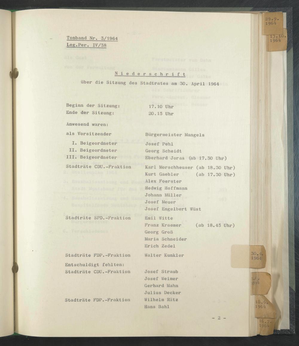 Niederschrift über die Sitzung des Stadtrates am 30. April 1964