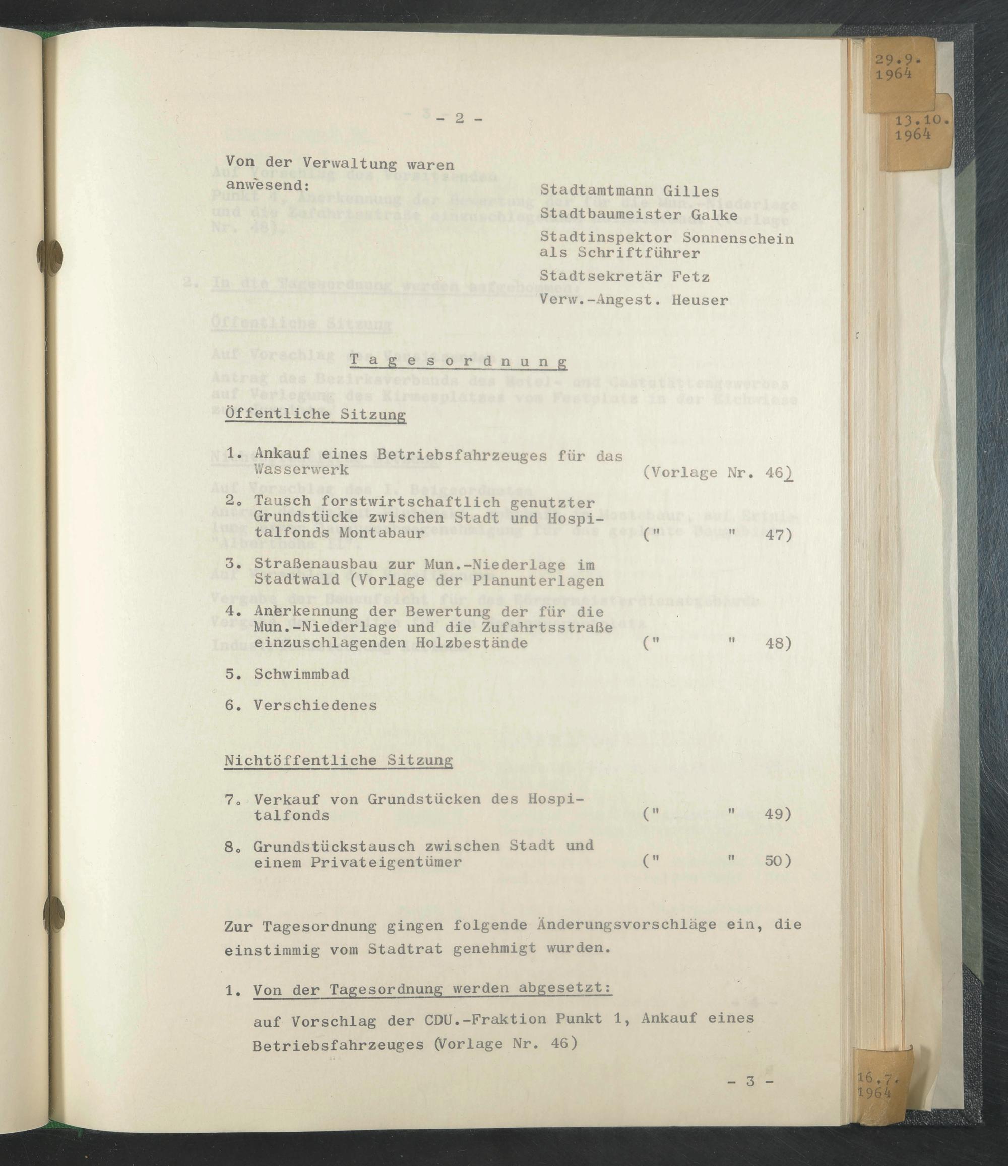Zur Tagesordnung gingen folgende Änderungs einstimmig vom Stadtrat genehmigt wurden.
