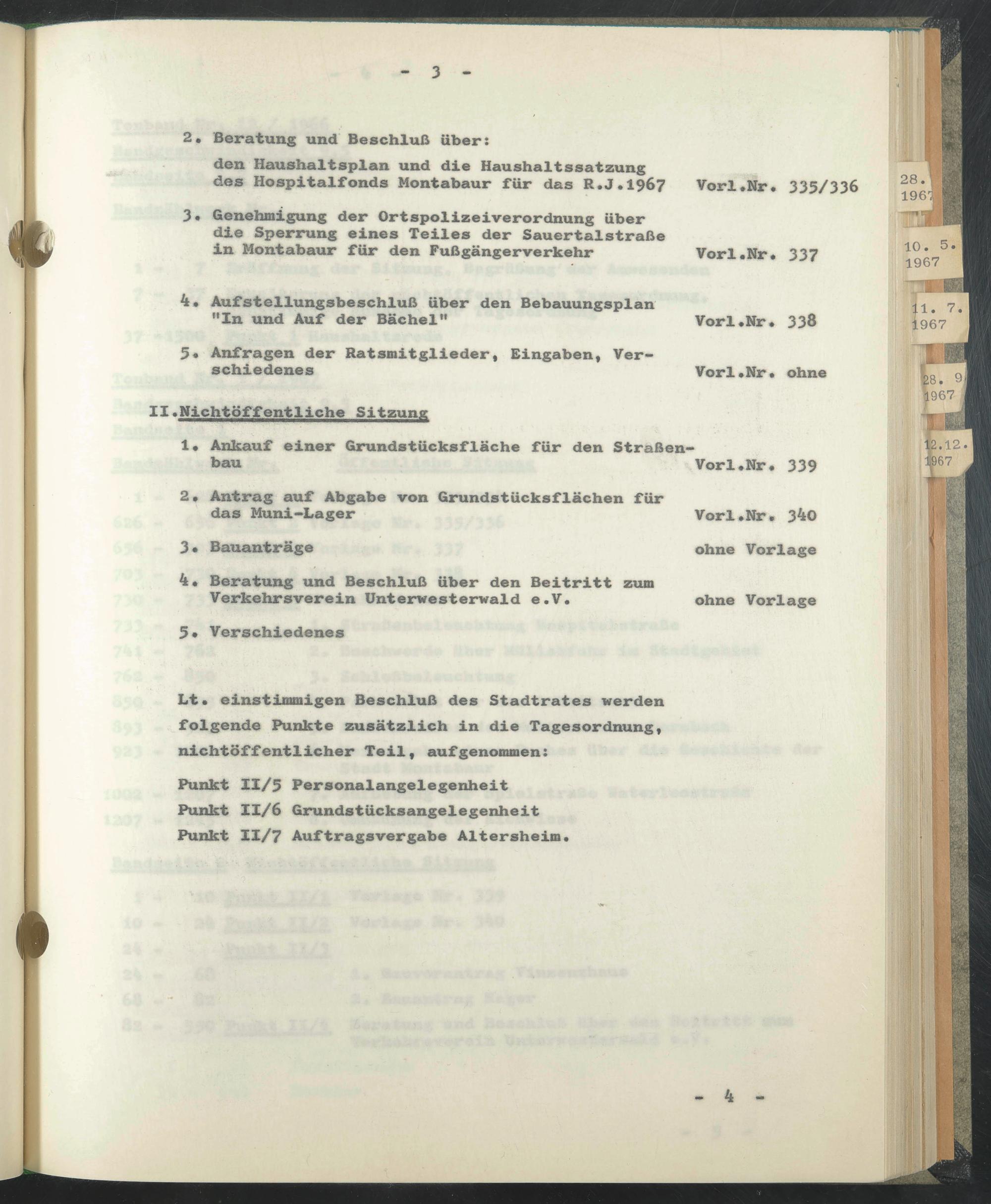 den Haushaltsplan und die Haushaltssatzung des Hospitalfonds Montabaur für das R.J.I 967