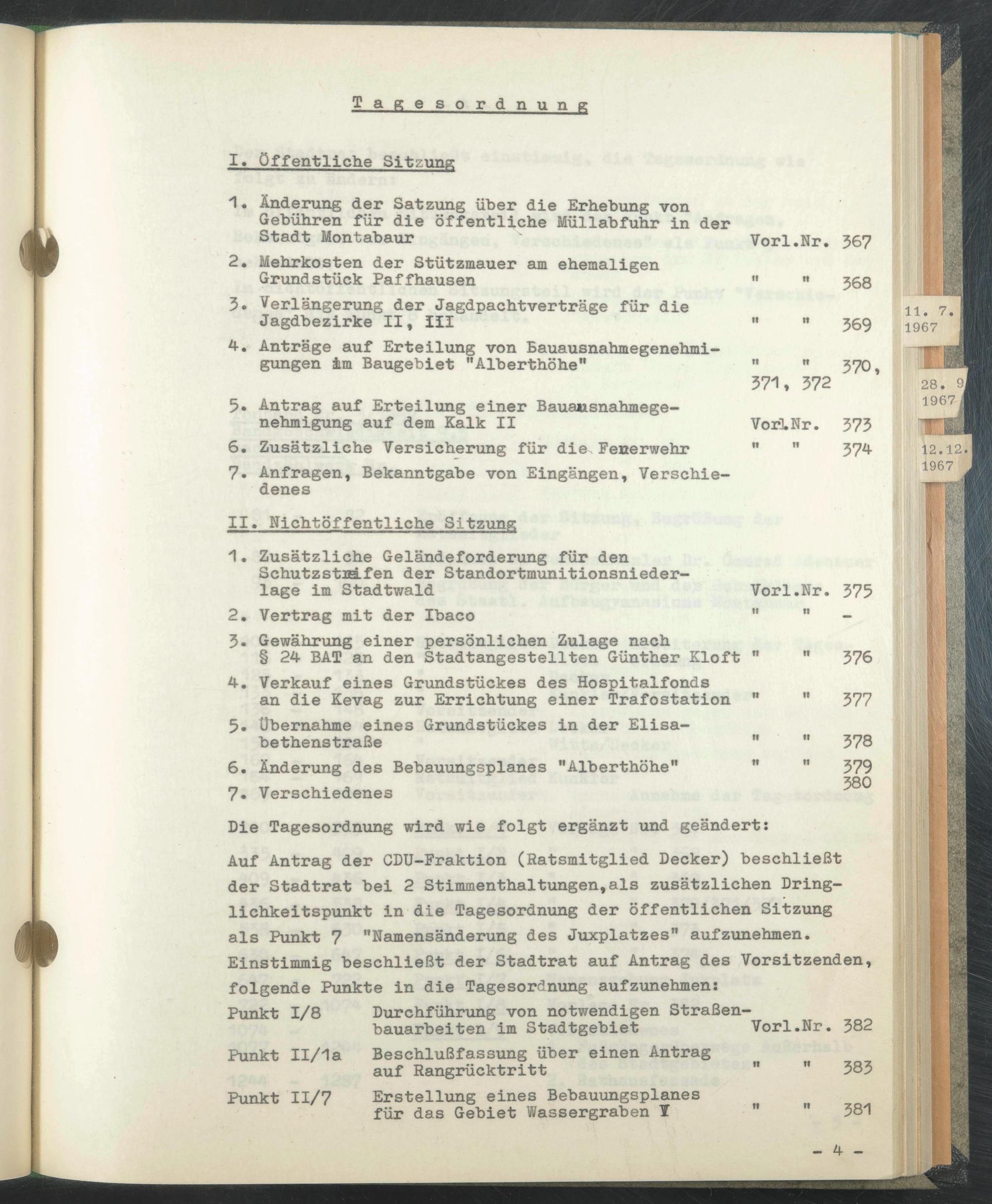 Die Tagesordnung wird wie folgt ergänzt und geändert: