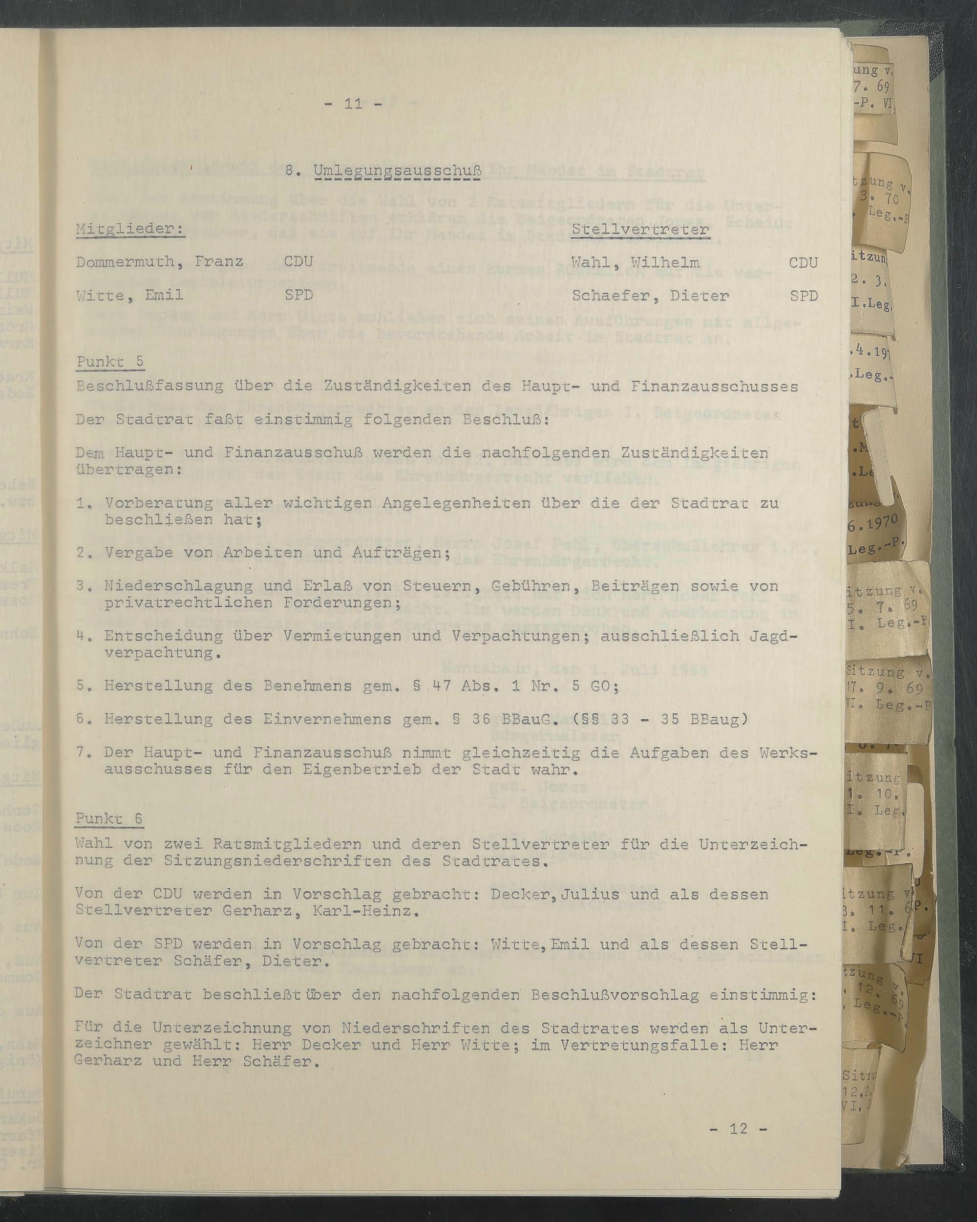 Von der SPD werden in Vorschlag gebracht: Witte,Emil und als dessen Stellvertreter Schäfer, Dieter.