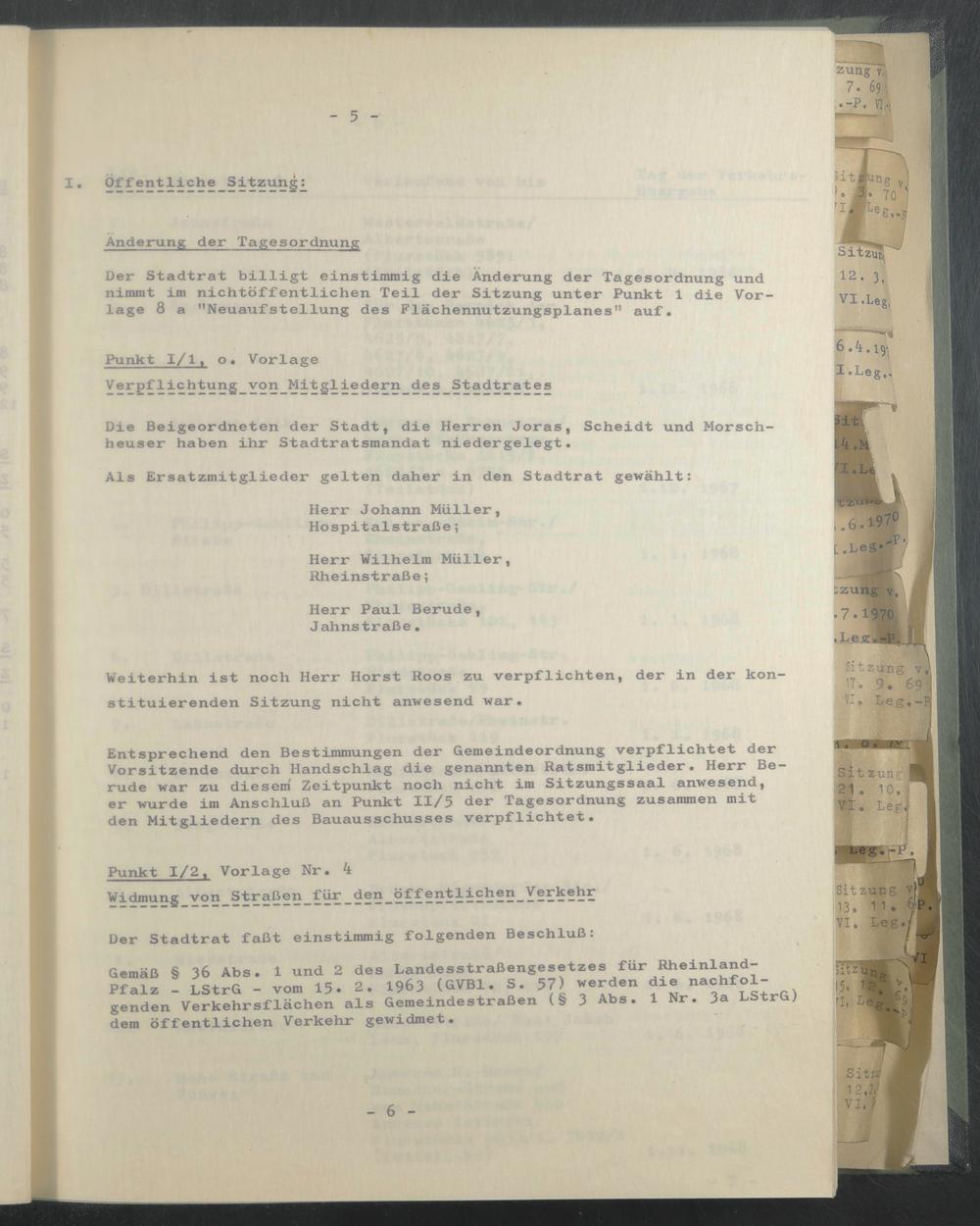 Gemäß § 36 Abs. 1 und 2 des Landesstraßengesetzes für Rheinland- Pfalz - LStrG - vom 15- 2. 1963 (GVB1. S. 57) werden die nachfolgenden Verkehrsflächen als Gemeindestraßen (§ 3 Abs. 1 Nr. 3a LStrG) dem öffentlichen Verkehr gewidmet.