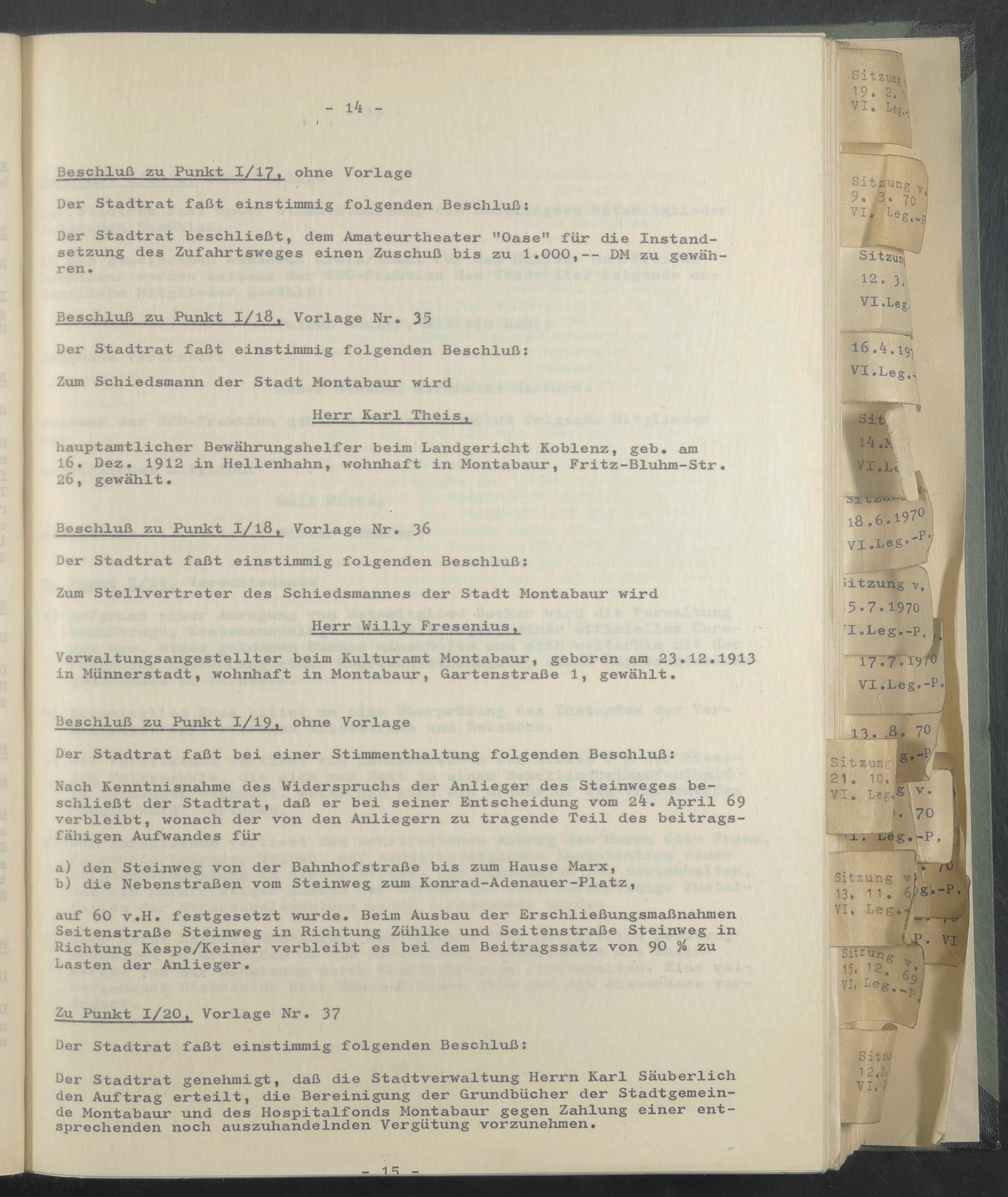 Verwaltungsangestellter beim Kulturamt Montabaur, geboren am 23.12.1913 in Münnerstadt, wohnhaft in Montabaur, Gartenstraße 1, gewählt.