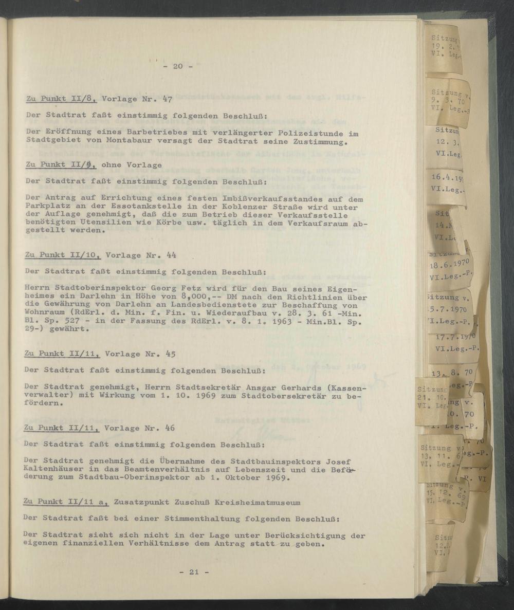 Der Stadtrat genehmigt, Herrn Stadtsekretär Ansgar Gerhards (Kassenverwalter) mit Wirkung vom 1. 10. 1969 zum Stadtobersekretär zu befördern.