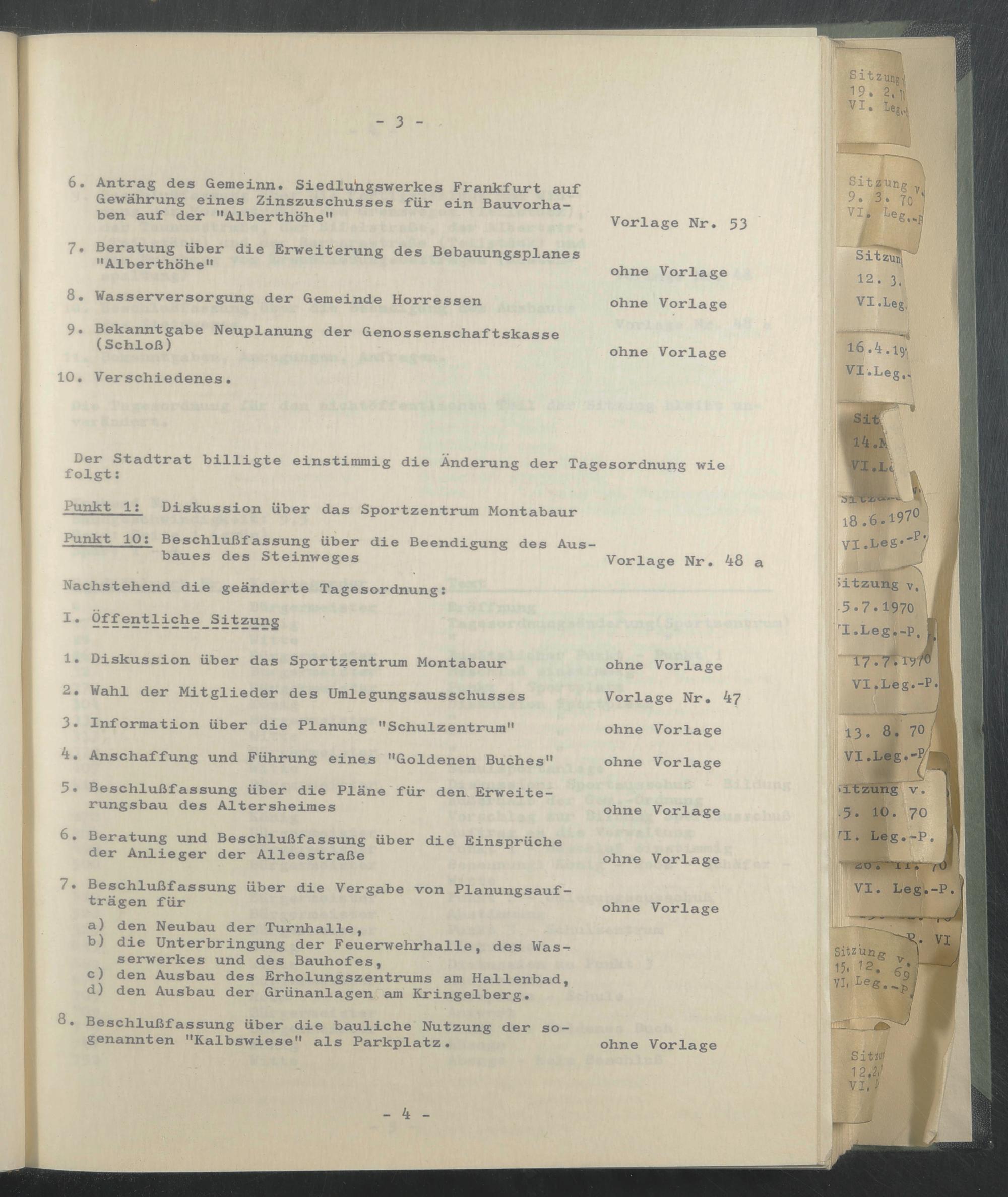 Der Stadtrat billigte einstimmig die Änderung der Tagesordnung wie folgt: