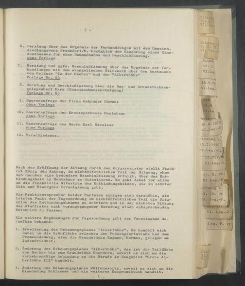 1. Erweiterung des Bebauungsplanes "Alberthöhe". Es handelt sich dabei um die Grünfläche zwischen der Fröschpfortstraße und dem Promenadenweg, also die Grundstücke Keiner, Hermes, gelegen am Judenfriedhof.
