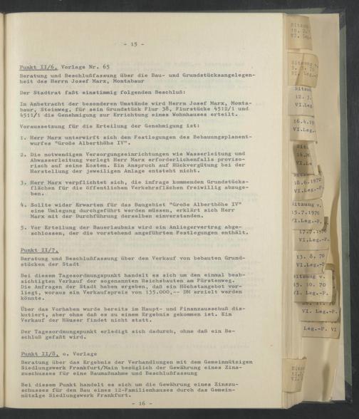Beratung und Beschlußfassung über die Bau- und Grundstücksangelegenheit des Herrn Josef Marx, Montabaur