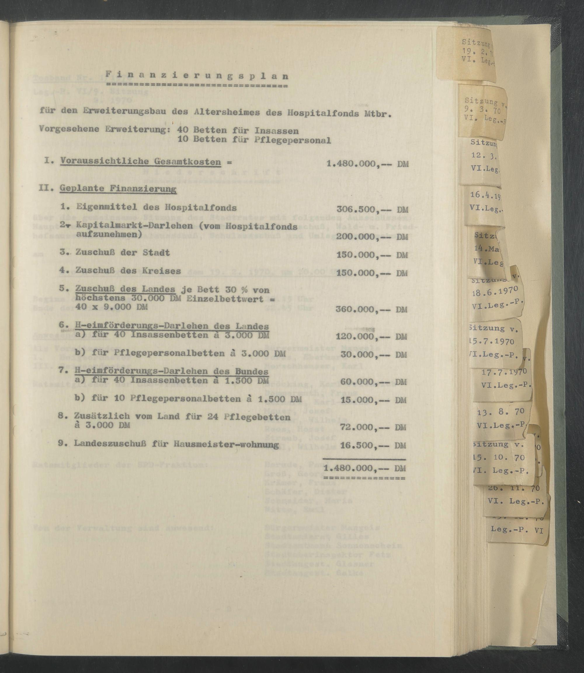 I. Voraussichtliche Gesamtkosten - 1.480.000,— DM