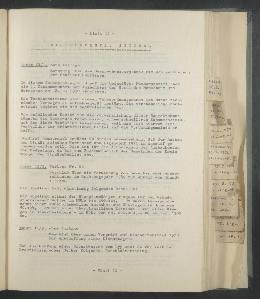 In diesem Zusammenhang wird auf die beigefügte Niederschrift über die 1. Zusammenkunft der Ausschüsse der Gemeinden Montabaur und Horressen am l8. 2. 1970 verwiesen.