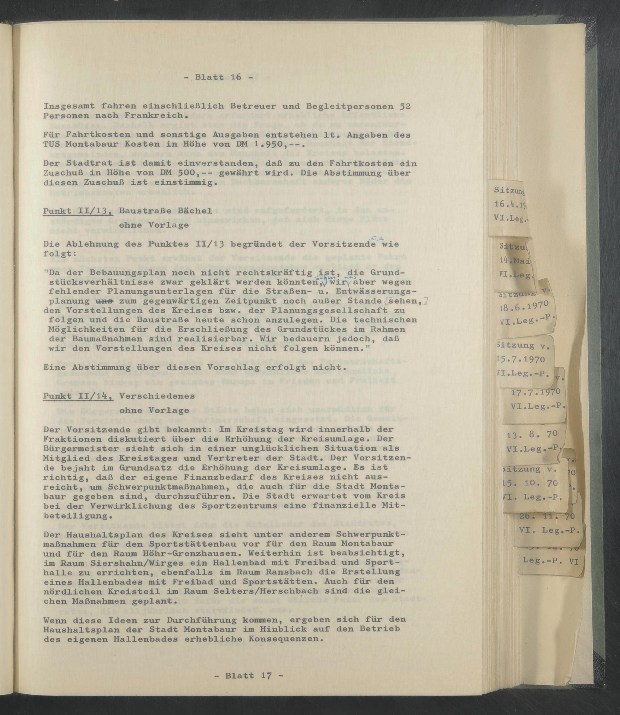 Der Stadtrat ist damit einverstanden, daß zu den Fahrtkosten ein Zuschuß in Höhe von DM 500,— gewährt wird. Die Abstimmung über diesen Zuschuß ist einstimmig.