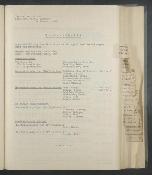 über die Sitzung des Stadtrates am 16. April 1970 im Sitzungssaal des Rathauses