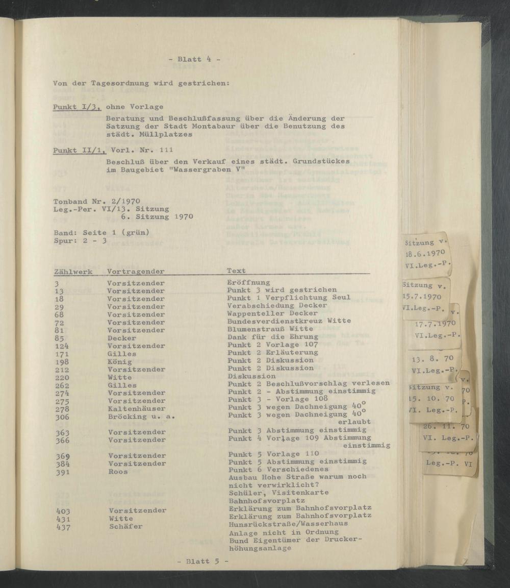 Tonband Nr. 2/1970 Leg.-Per. VI/13. Sitzung
