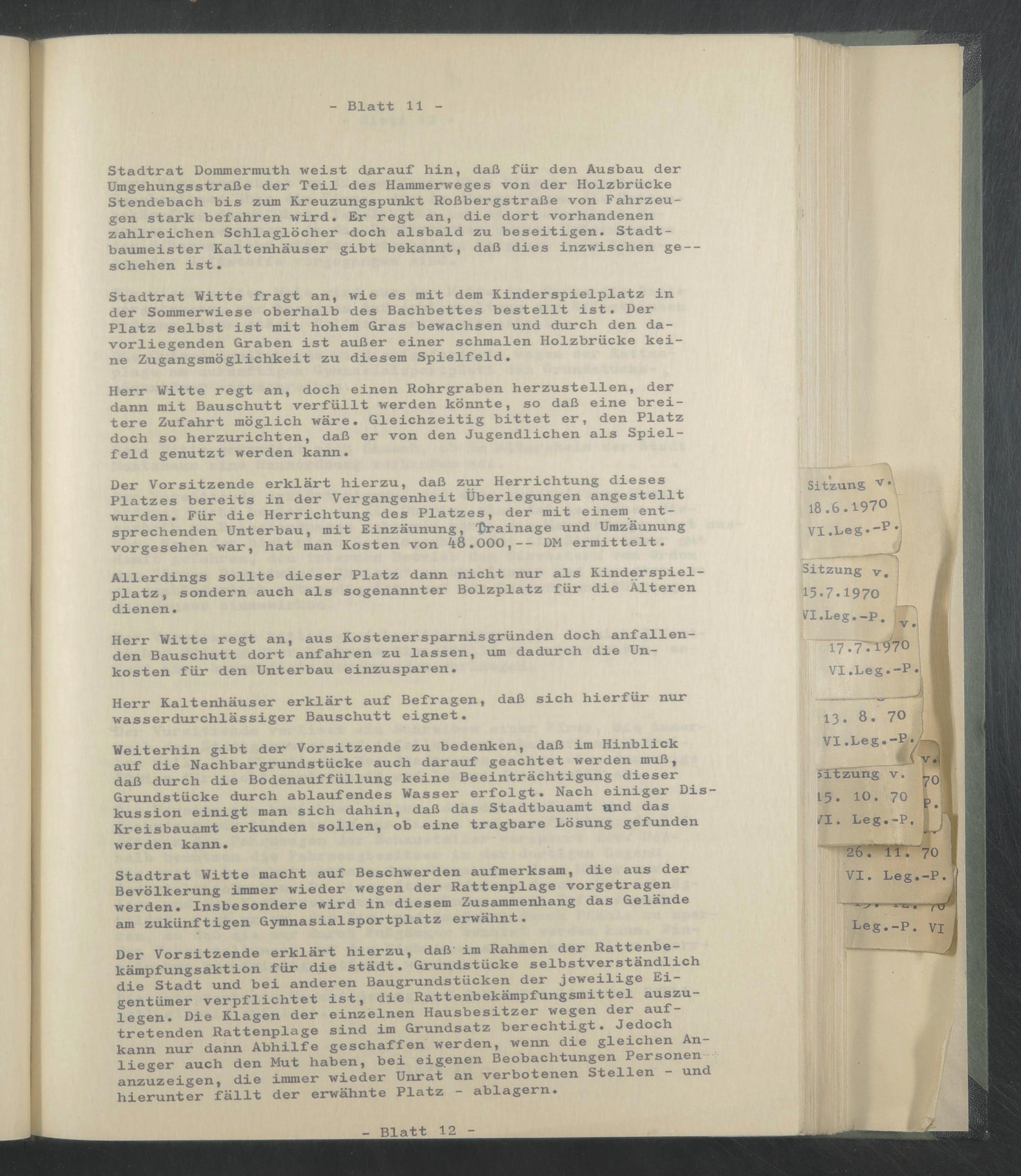 Der Vorsitzende erklärt hierzu, daß im Rahmen der Rattenbekämpfungsaktion für die städt. Grundstücke selbstverständlich die Stadt und bei anderen Baugrundstücken der jeweilige Eigentümer verpflichtet ist, die Rattenbekämpfungsmittel auszulegen. Die Klagen der einzelnen Hausbesitzer wegen der auftretenden Rattenplage sind im Grundsatz berechtigt. Jedoch kann nur dann Abhilfe geschaffen werden, wenn die gleichen Anlieger auch den Mut haben, bei eigenen Beobachtungen Personenanzuzeigen, die immer wieder Unrat an verbotenen Stellen - und hierunter fällt der erwähnte Platz - ablagern.