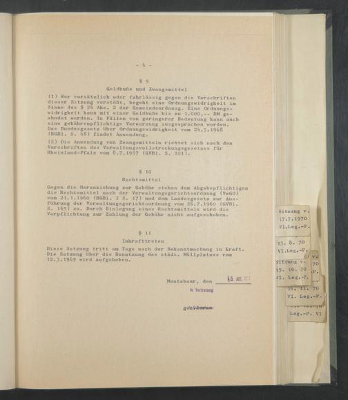 Diese Satzung tritt am Tage nach der Bekanntmachung in Kraft, Die Satzung über die Benutzung des städt. Müllplatzes vom I2.3.I969 wird aufgehoben.