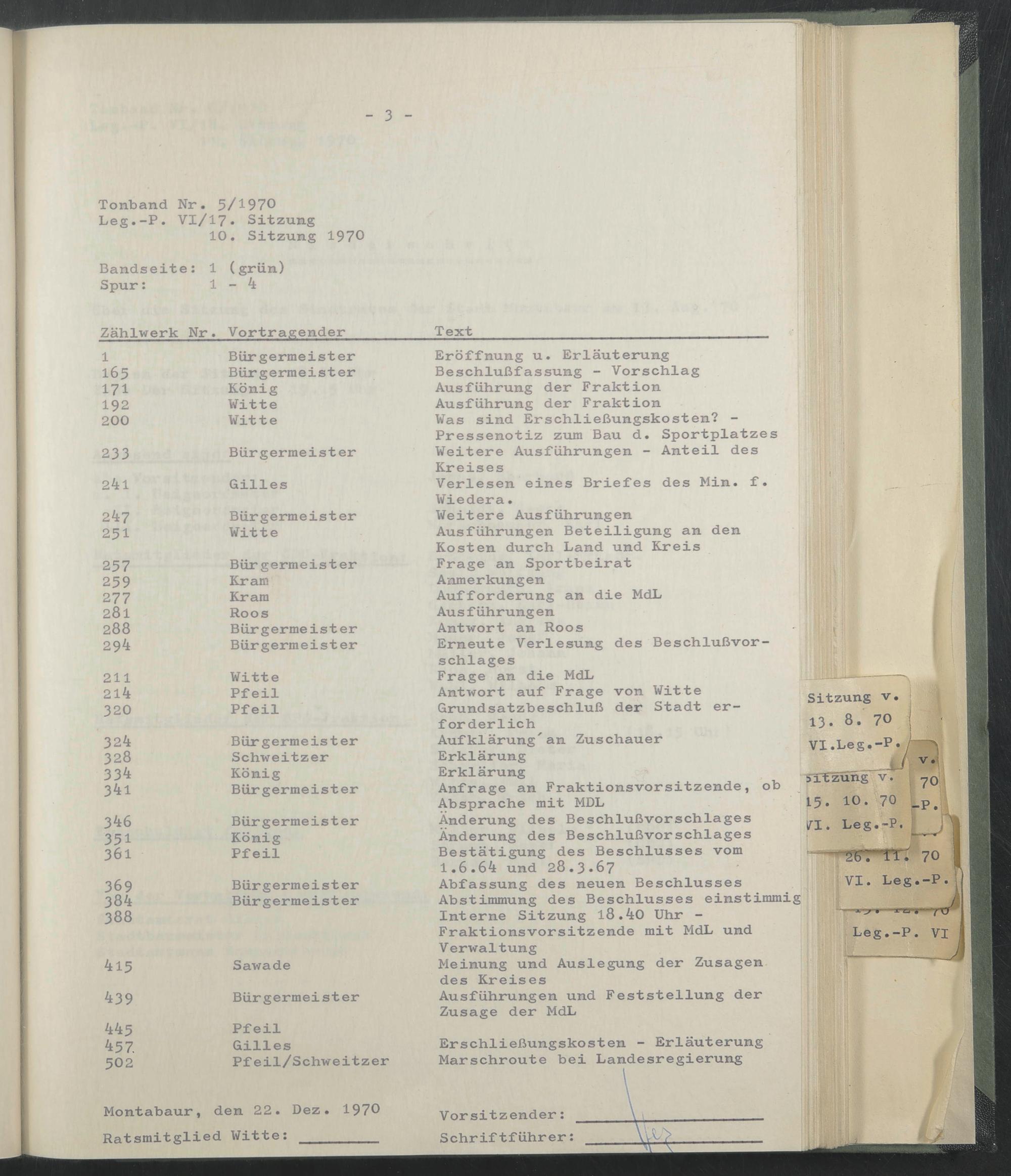 Montabaur, den 22. Dez. 1970 Ratsmitglied Witte: _