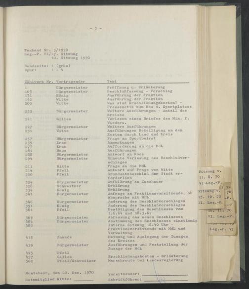 Tonband Nr. 5/1970 Leg.-P. VI/ 17 . Sitzung