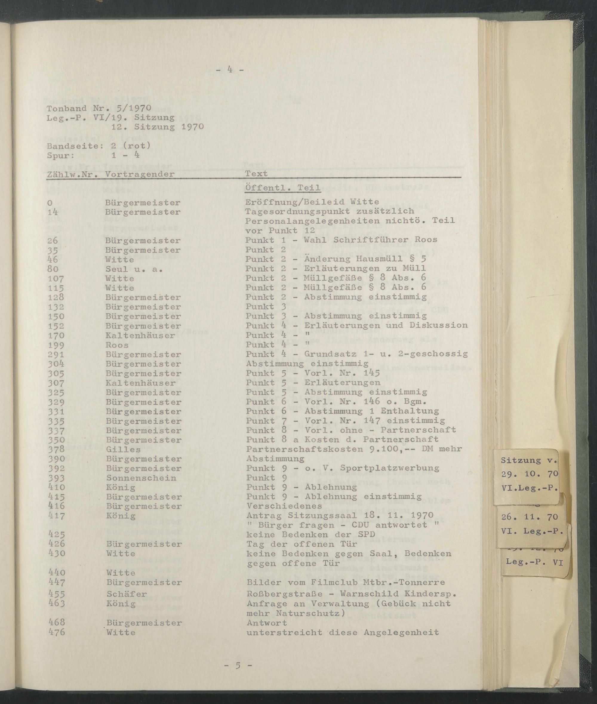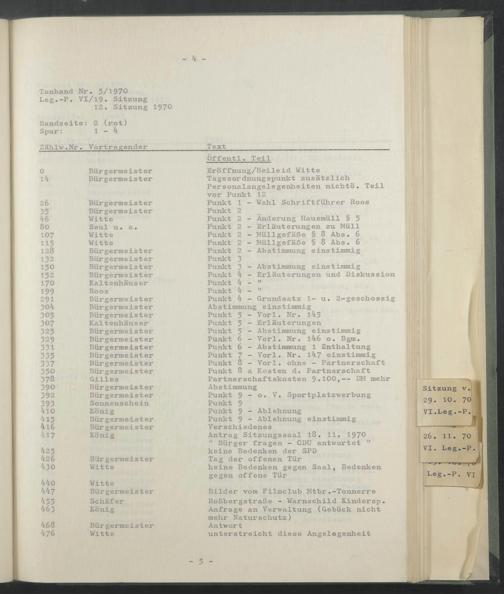 Tonband Nr. 5/1970 Leg.-P. VI/ 19 . Sitzung