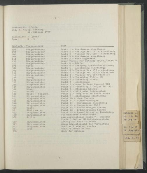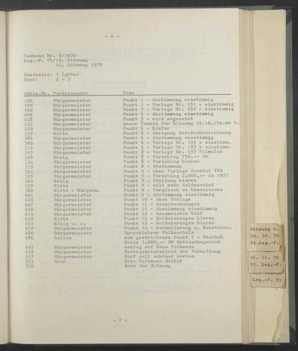 Tonband Nr. 5/1970 Leg.-P. VI/ 19 . Sitzung