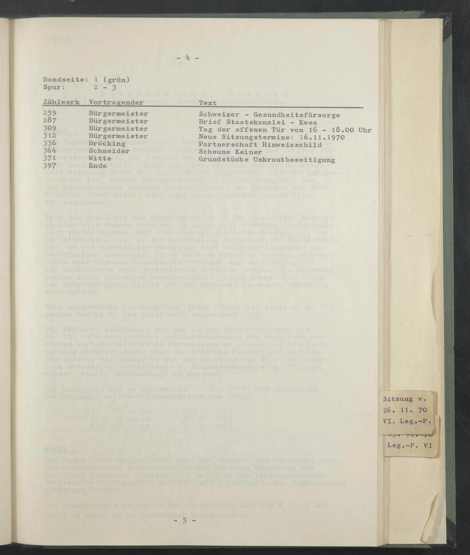 Neue Sitzungstermine: 16.11.1970