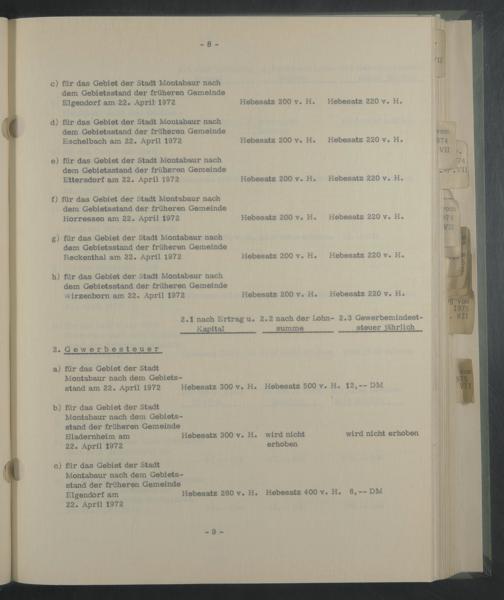 Reckenthal am 22. April 1972 Hebesatz 200 v. H. Hebesatz 220 v. H.