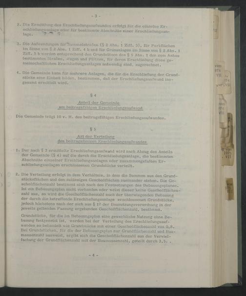 3. Die Aufwendungen für**Sammelstraßen (§ 2 Abs. 1 Ziff. 3), für Parkflächen im Sinne von § 2 Abs. 1 Ziff. 4 b und für Grünanlagen im Sinne von § 2 Abs. 1 Ziff. 5 b werden entsprechend den Grundsätzen des § 5 Abs. 1 den zum Anbau bestimmten Straßen, vVegen und Plätzen, für deren Erschließung diese gemeinschaftlichen Erschließungsanlagcn notwendig sind, zugerechnet.
